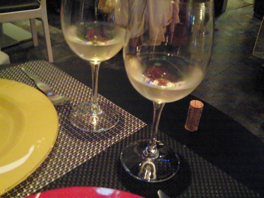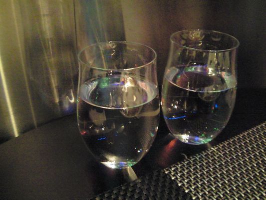 口直しの水が、店の内装の光を受けて幻想的に光っていたのが印象的。