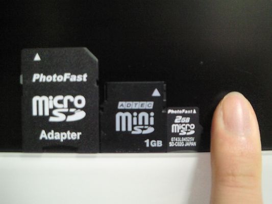 一番左がSDサイズ、真ん中がMiniSD、右が今回のMicroSD。