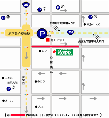 地下鉄 心斎橋駅下車 クリスタ長堀 南10番出口を出てすぐ